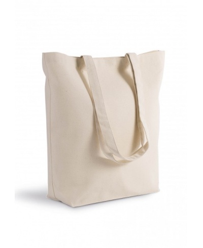 Organic cotton tote bag 310 gsm. Wide base with 12 cm gussetand long 70 cm handles.