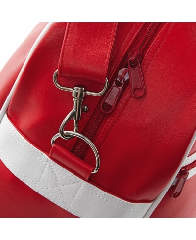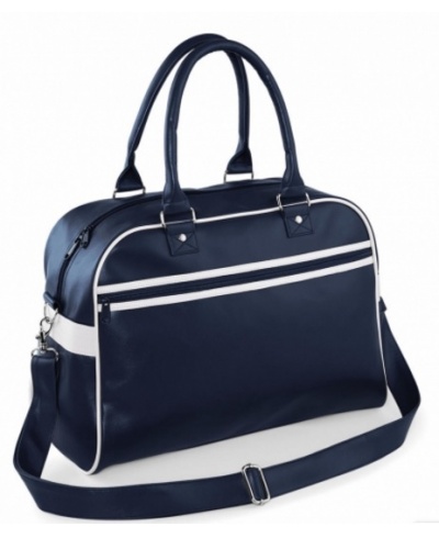 TearAway label for ease of rebranding, EasyPocket™ for ease of decoration, retro styling, internal valuables pocket, zippered main compartment, zippered front pocket, internal baseboard, protective base feet, adjustable shoulder strap, self fabric carry handles