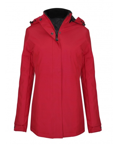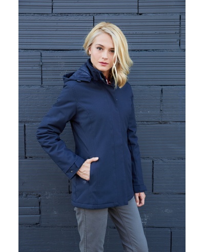 Outer: 100% polyester Oxford. Inner: quilted polyester. Zip fastening with invisible tab and press studs. 2 zipped outside pockets. 1 inside pocket. Detachable hood. Fleece lined collar. Zip access for decoration.