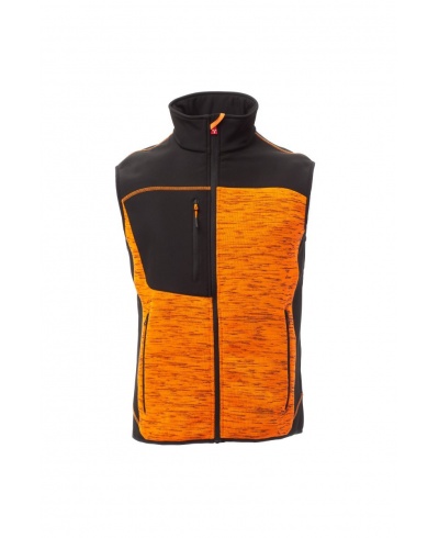 Men’s comfort-fit vest, zip closure with "semi-auto lock" metal slider and customised pull. Thin edge on the armhole and waist, two side pockets with zip, one breast pocket. Knitted workmanship with black soft-shell inserts.