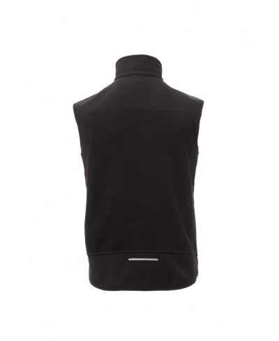 Men’s comfort-fit vest, zip closure with "semi-auto lock" metal slider and customised pull. Thin edge on the armhole and waist, two side pockets with zip, one breast pocket. Knitted workmanship with black soft-shell inserts.