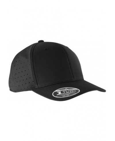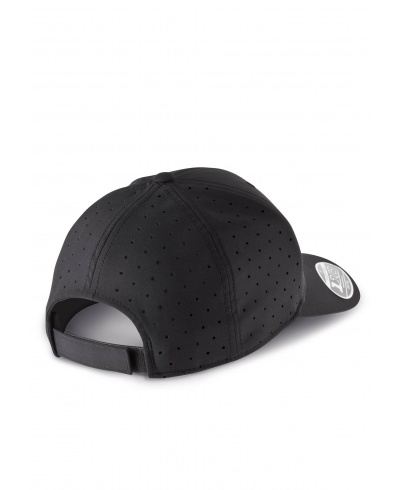 92 % polyester / 8 % elastane. 6 panels. Curved peak and reinforced panels inside crown to maintain shape. Flexfit® Cool & Dry technology for added comfort and optimal absorption of moisture on inner elasticated band. Laser perforations on side and back panels. Size adjuster with tear release fastening.