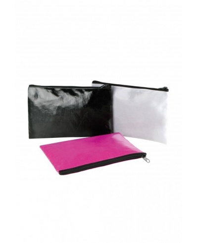 Pocket, transparent PVC coated outer for enhanced water resistance. Top zip fastening. SBS zip. Dimensions: 24 x 16 x 1 cm