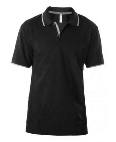 60 % cotton / 40% polyester Pique knit. Flat knit collar and cuffs with contrast piping. Contrast taped neck and side vents. 2 button placket with contrast tipping. Twin needle finishing.