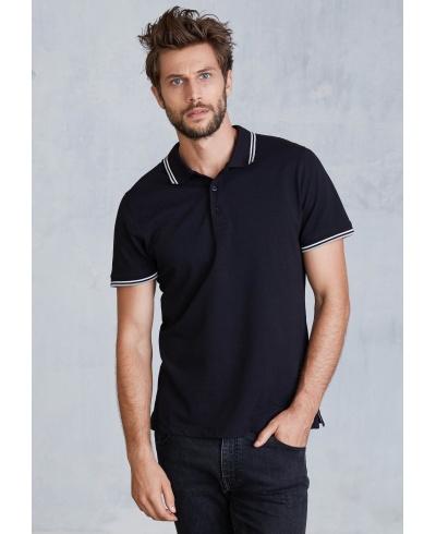 100% cotton piqué. 3 button placket. Contrast taped neck and side vents. Flat knit rib with contrast tipping at neck and cuffs. Twin needle finishing.