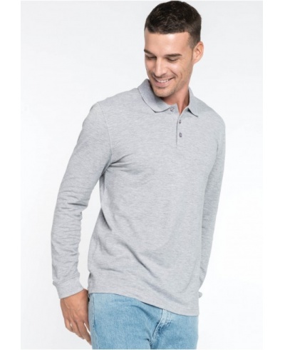 100 % pre-shrunk cotton piqué (Oxford grey: 90 % cotton / 10 % viscose). Regular fit. Matching ribbed neck and cuffs. Placket with 3 matching buttons. Taped neck.