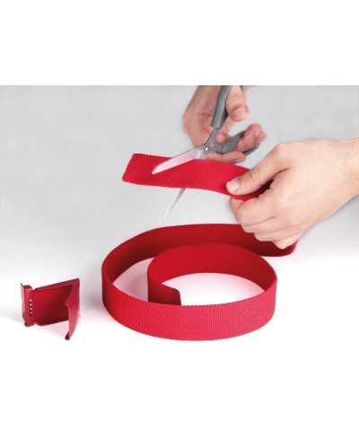 100% polyester. Tone-on-tone metal buckle. Adjustable length from XS to 3XL.
