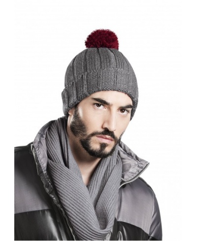 100% acrylic Hat with turn up and pom pom.