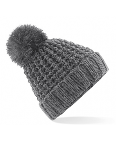 Sumptuous popcorn knit, tearAway label for ease of rebranding, luxury self-coloured faux fur pom pom, removable pom pom for ease of washing,