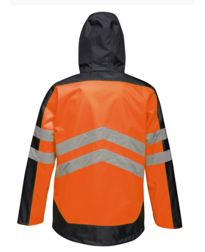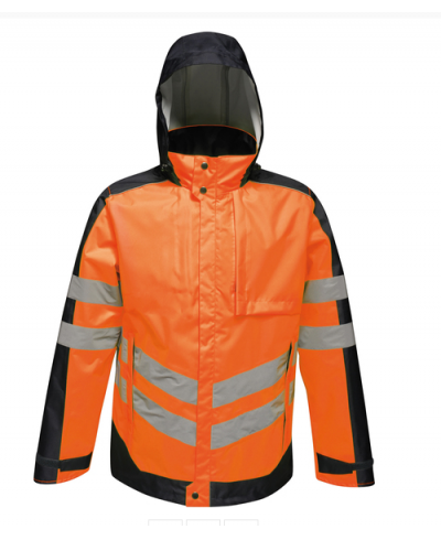 Waterproof and breathable fabric Isotex 10 000 made of 100% polyester 300D, complies with standard ČSN EN 343 class 3: 3, windproof fabric, Thermo-Guard insulation, reinforcing tape on the seam, ČSN EN ISO 20471: 2013 + A1: 2016 class 3, orange color corresponds to RIS-3279 / TOM standard, hidden hood with adjusters, 2 bottom zip pockets, inner wind flap with chin protection, manufacturer guarantees reflective properties in accordance with EN standard for 5 washes