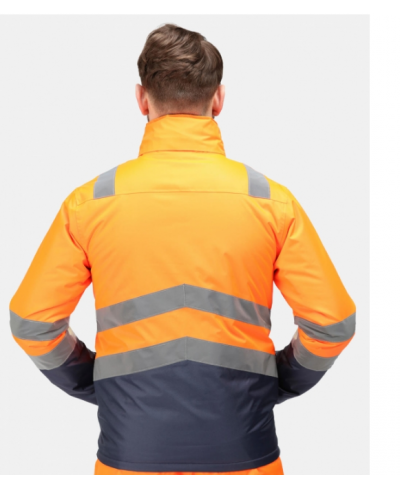 Composition: 100% polyester (300D); Waterproof and breathable fabric Isotex 10000 made of polyester 300D with taped seams, durable fabric, wind resistant, EN343: 2003 A1: 2007 class 3: 3, orange also meets RIS-3279 / TOM, EN ISO 20471: 2013 + A1: 2016 class 2, concealed hood with adjusters, Thermo-guard insulation, reflective oblique zigzag pattern