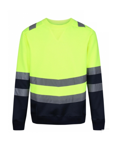 Composition: 65% polyester / 35% combed cotton lining; EN ISO 20471: 2013 + A1: 2016 Class 2; Orange also meets RIS-3279 / TOM, round neckline, ribbed cuffs and hem, reflective oblique zigzag pattern