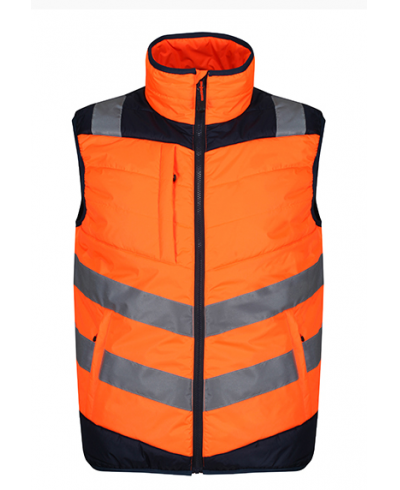 Hydrafort waterproof polyester fabric, EN ISO 20471: 2013 + A1: 2016 class 2, orange also meets RIS-3279 / TOM, Thermo-guard thermal insulation 140 gsm, 1 zipped chest pocket and 2 zipped bottom pockets, reflective oblique zigzag pattern