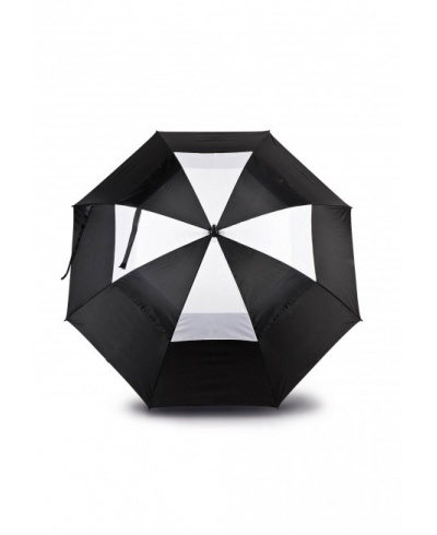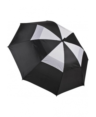 29.5 inch (75 cm) golf umbrella, manual opening with safety fastening. Fibre glass pole and frame. Ribs with plastic tips. Windproof two tone double layer polyester canvas 210T on top. Ergonomic non-slip handle. Contrast zipped carry bag.