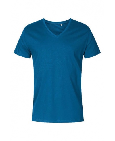 The unique single jersey t-shirt with a v-neck and self-woven collar is made from a long staple combed cotton. The especially smooth surface and flowing fabric give the jersey a unique, elastic and silky finish. The T-shirt has a narrow cut and is made with side seams. Certified according to OEKO-TEX®