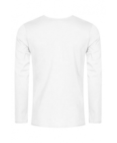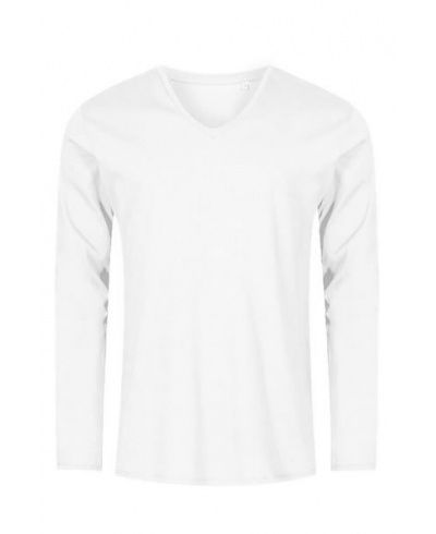 Long-sleeved single jersey T-shirt with a V-neckline and self-fabric collar is made of combed cotton. The especially smooth surface and flowing fabric give the jersey a unique, elastic and silky finish. The T-shirt has a narrow cut and is made with side seams. Certified according to OEKO-TEX®