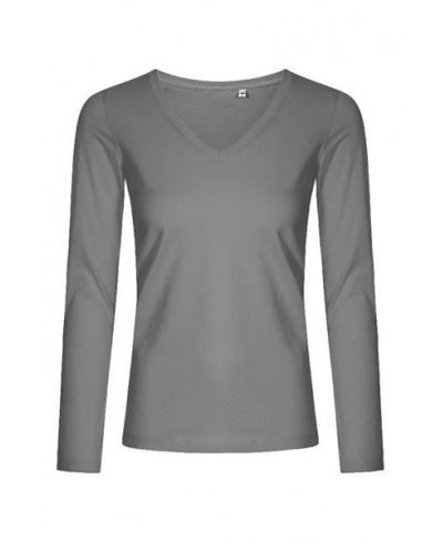 Long-sleeve, V-neck single-jersey t-shirt with collar is made of combed cotton. The especially smooth surface and flowing fabric give the jersey a unique, elastic and silky finish. The T-shirt has a narrow cut and is made with side seams. Certified according to OEKO-TEX®