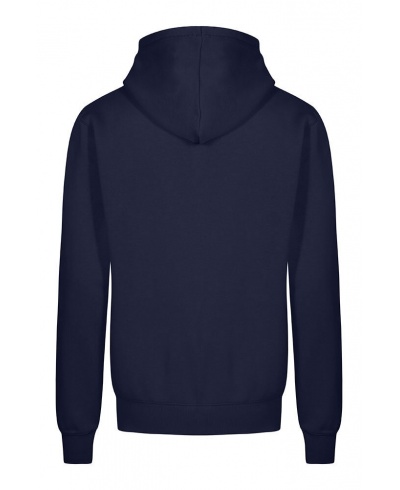 Molton blend hooded sweatshirt with brushed interior, kangaroo pocket and elastane cuffs, sleeves and hem is made from long base combed cotton and polyester. The particularly smooth surface and flowing fabric give the sweatshirt a unique, elastic and silky finish. The sweatshirt has a narrow cut. OEKO-TEX® certified.