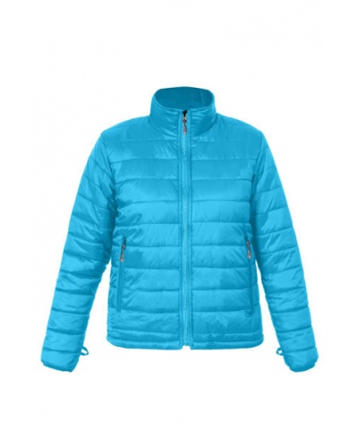 The quilted jacket features a stand-up collar, a full-length zip, two side zip pockets, a jacket closure and a neutral size label. The jacket stands out with its sporty cut. It is made of nylon (outer/inner material) and polyester (wadding).