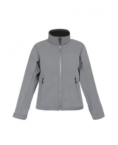 Softshell jacket with velcro adjustable sleeve cuffs has a tunnel drawstring hem with internal drawstring stops, two zipped side pockets and outer jacket closure. The product is breathable and waterproof. It stands out with its sporty cut.