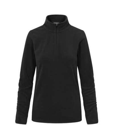A half-zip, stand-up neck sweater with a nylon zip has narrow elasticated cuffs and a hem. The sweater has offset shoulder and side seams. It is made of recycled polyester with an anti-pilling treatment on both sides. The fleece sweater has a sporty, modern cut.