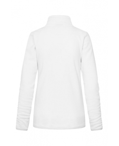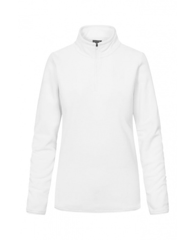 A half-zip, stand-up neck sweater with a nylon zip has narrow elasticated cuffs and a hem. The sweater has offset shoulder and side seams. It is made of recycled polyester with an anti-pilling treatment on both sides. The fleece sweater has a sporty, modern cut.