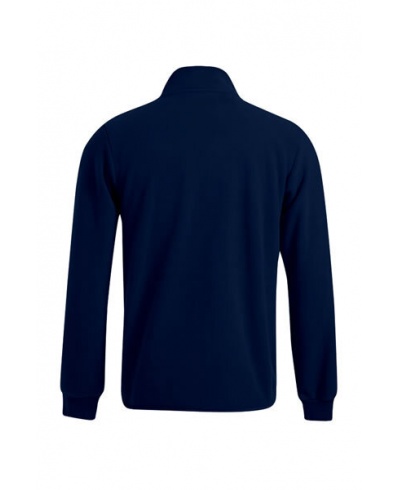 The double fleece jacket has a stand-up collar and a full-length concealed zip, as well as narrow cuffs with elastic trim and two zipped side pockets. The inside of the jacket is in a contrasting color and is made of polyester with anti-pilling treatment on both sides. The fleece jacket has a narrow cut.