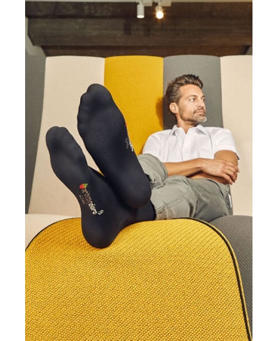 Single jersey classic business socks are made of cotton with polyamide and elastane. Orders can only be placed for a complete package.