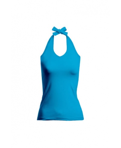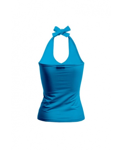 The modern single jersey top with a tie behind the neck is made of combed cotton with elastane for added comfort. The top has a modern cut and is made with side seams.
