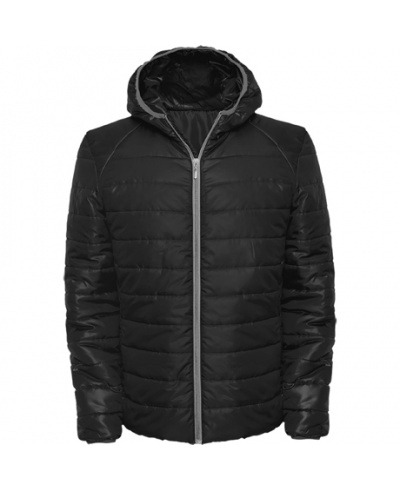 Quilted jacket with filling and fitted hood.
