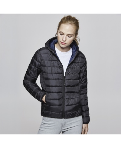 Women´s quilted jacket feathery to the touch with fitted hood.