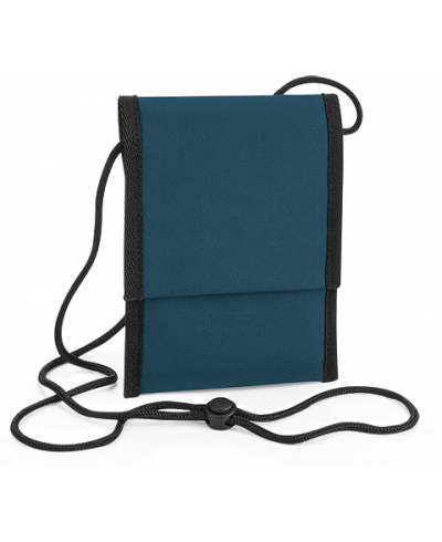 Material: 100% Recycled 600D Polyester; Dimensions: 18 x 14 x 1 cm Capacity: 0.5 litres; Recycled Polyester made from 100% rPET, equivalent to 2 post-consumer bottles, PVC Free, small valuables pocket, passport pocket, Rip-Strip™ closure, adjustable neck cord, tearAway label for ease of rebranding