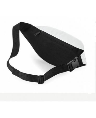 Material: 85% Polyester/ 15% Cotton; Dimensions: 38 x 14 x 8 cm; Capacity: 2.5 litres; TearAway label for ease of rebranding, reflective powder coating for enhanced visibility, large zippered main pocket, zippered rear pocket, lightweight yet durable, adjustable webbing belt with secure clip fastener