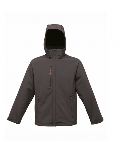 Warm-backed Softshell fabric, durable water repellent finish, mesh lined body, 2 zipped lower pockets and waterproof chest pocket, detachable hood with adjuster, adjustable cuffs, adjustable shockcord hem, concealed zip entrance in lining for embroidery access