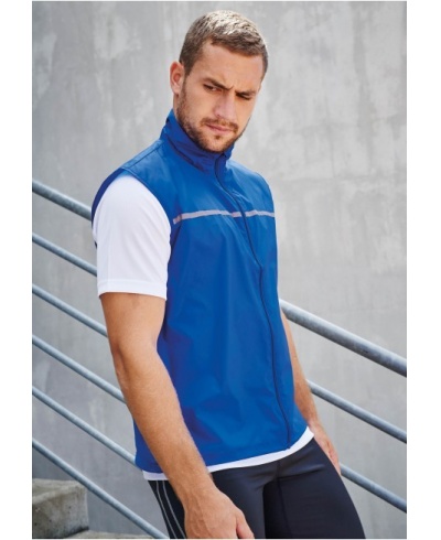 100 % Polyamide. Mesh lined back. Zip through front. Reflecting tape front and back. Elasticated drawcord and toggles.