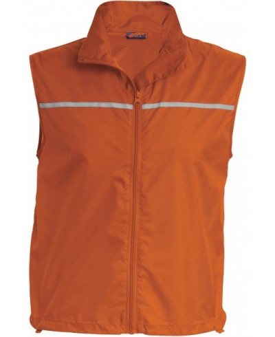 100 % Polyamide. Mesh lined back. Zip through front. Reflecting tape front and back. Elasticated drawcord and toggles.