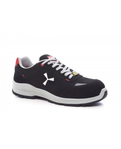 Men's low safety shoe, upper in water-repellent and breathable perforated split leather, inner lining (throughout the internal surface) breathable and resistant to abrasion, 1 + 1 metal-free eyelets and 6 + 6 reinforced lace holes, reflective inserts in the heel guard and outer side of the tip, die-cast aluminium tip, Ortholite X40 016 ESD removable arch support, certified anti-puncture reinforced fabric insole, anti-torsion shank, horseshoe-shaped under-toe, ultra-light ESD polyurethane mid-sole, high tenacity and balanced density ESD polyether MASTER BALANCE cushioning, XTRAIL GRIP outsole in ESD TPU with heel and tip guard