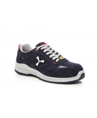 Men's low safety shoe, upper in water-repellent and breathable perforated split leather, inner lining (throughout the internal surface) breathable and resistant to abrasion, 1 + 1 metal-free eyelets and 6 + 6 reinforced lace holes, reflective inserts in the heel guard and outer side of the tip, die-cast aluminium tip, Ortholite X40 016 ESD removable arch support, certified anti-puncture reinforced fabric insole, anti-torsion shank, horseshoe-shaped under-toe, ultra-light ESD polyurethane mid-sole, high tenacity and balanced density ESD polyether MASTER BALANCE cushioning, XTRAIL GRIP outsole in ESD TPU with heel and tip guard