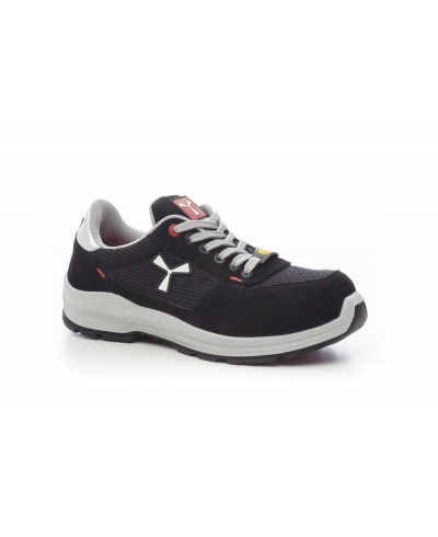 Women’s low safety shoe, upper in water-repellent split leather with inserts in breathable technical fabric, inner lining (throughout the internal surface), breathable and resistant to abrasion, 6 + 6 metal-free eyelets, reflective insert in the heel guard, die-cast aluminium tip, Ortholite X40 016 ESD removable arch support, certified anti-puncture reinforced fabric insole, anti-torsion shank, horseshoe-shaped under-toe, ultra-light ESD polyurethane mid-sole, high tenacity and balanced density PU polyether MASTER BALANCE cushioning, XTRAIL GRIP outsole in ESD TPU with heel and tip guard