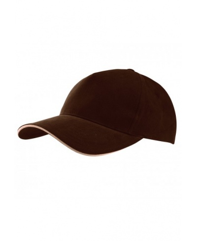 100% heavy brushed cotton twill. 5 panel laminated cap. Contrasted sandwich. Cotton sweatband. Size adjuster with metal buckle.