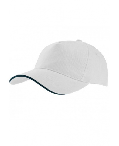 100% heavy brushed cotton twill. 5 panel laminated cap. Contrasted sandwich. Cotton sweatband. Size adjuster with metal buckle.