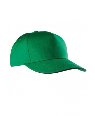 100% cotton twill. 5 laminated panel cap with contrasted sandwich peak and cotton sweatband. Size adjuster with tear release fastening.