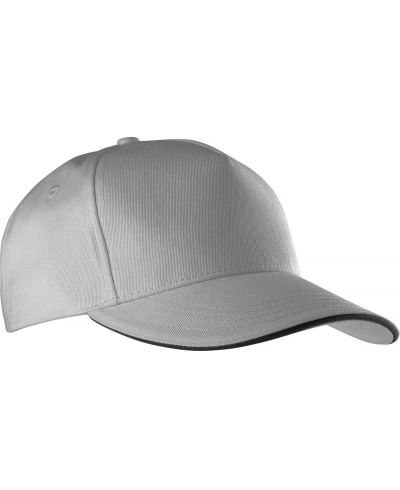 100% cotton twill. 5 laminated panel cap with contrasted sandwich peak and cotton sweatband. Size adjuster with tear release fastening.