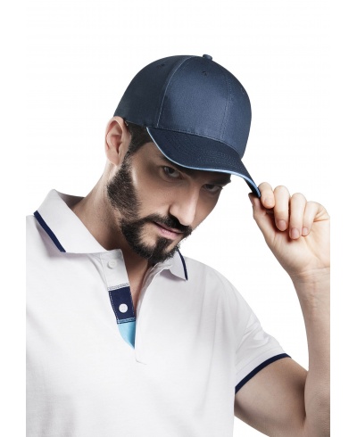 100% cotton twill. 6 panels. Contrasting sandwich peak. Adjustable rear fastening with metal buckle.