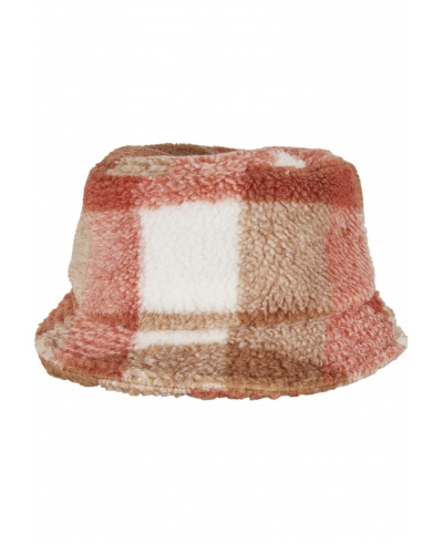 Bucket hat redesigned: this hat features a fluffy Sherpa fabric and a large, harmonious check pattern. Also, it offers a slanted brim with decorative seams and is a one size fits all. The material of the bucket hat is polyester and acrylic.
