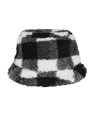 Bucket hat redesigned: this hat features a fluffy Sherpa fabric and a large, harmonious check pattern. Also, it offers a slanted brim with decorative seams and is a one size fits all. The material of the bucket hat is polyester and acrylic.