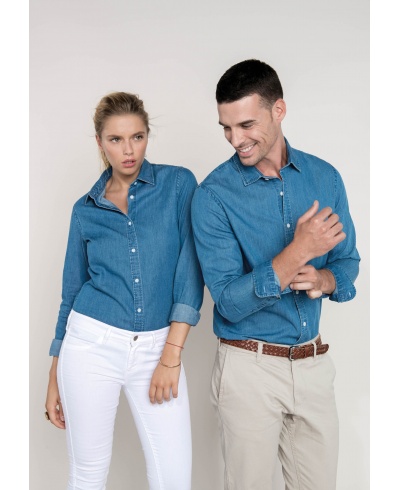 100 % cotton chambray. Denim-effect light fabric. Soft and comfortable fabric. Fashion slim fit. Fancy inner collar band. Contrast buttons. Adjustable cuffs.