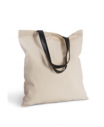 Cotton canvas shopping bag 220 gsm, with PU imitation leather handles.