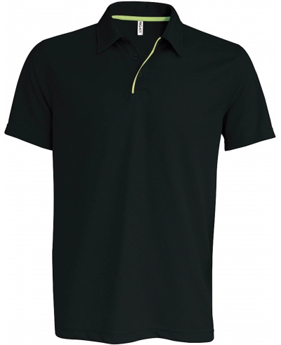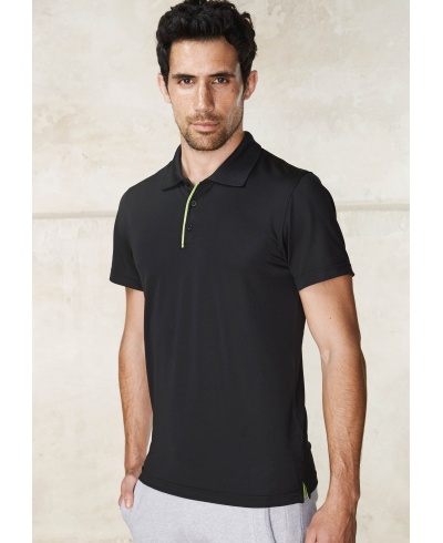 95% polyester 5% Lycra®. Quick drying breathable and anti static fabric. Piqué knit. Flat knit collar with reinforced contrast tape. 3-button placket with contrast piping. Side vents. Twin needle finishing.