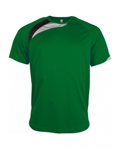 100% polyester. Quick drying fabric. Contrast panels. Matching coverstitch finishing. Twin needle finishing.
